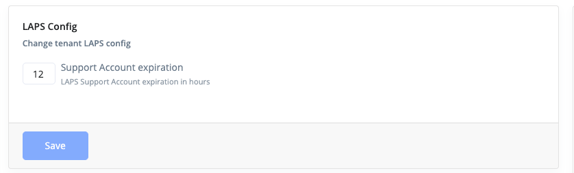 Avec ce paramètre du Tenant, vous pouvez configurer le temps d’expiration du compte de support RealmJoin LAPS.&#x20;