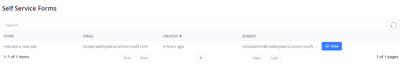 The Self Service Forms settings page allows to manage existing forms, add, edit and delete forms.