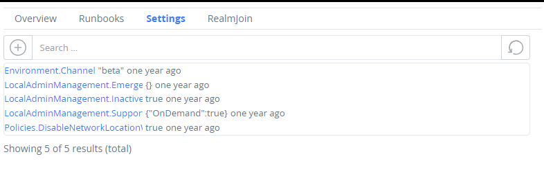 , alternatively open an existing setting by clicking on its name/key or search by name/key.